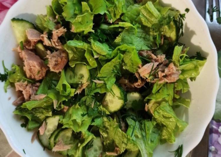 - Все овощи нарезать, листья салата можно порвать руками. Добавить тунец консервированный в собственном соку и заправить йогурт + соевый соус. Соль и перец по-вашему вкусу. В такой салат можно добавлять разнообразные овощи. Приятного аппетита!.