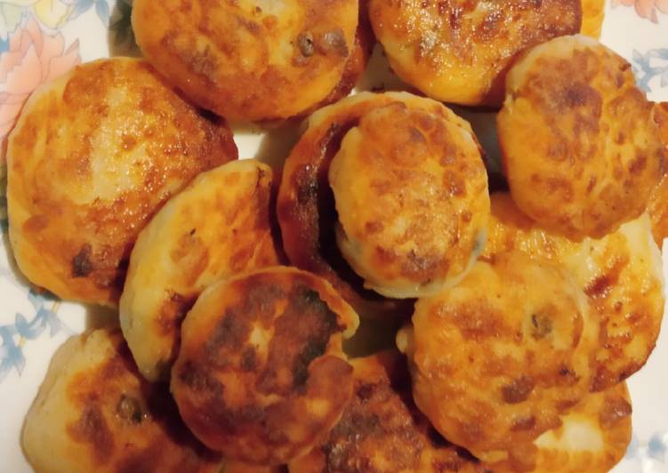 - Скатать шарики, каждый обвалять в муке, приплюснуть и обжарить на разогретой сковороде с растительным маслом до золотистой корочки. Приятного аппетита всем!!!.