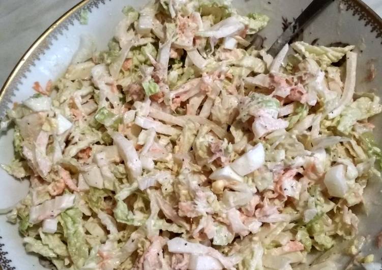 Салат из консервированного тунца с пекинской капустой.