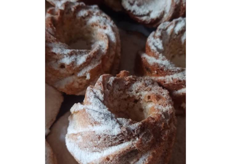 - Выпекать в предварительно разогретой духовке до 175° около 25'. Остывшие кексы посыпать сахарной пудрой..