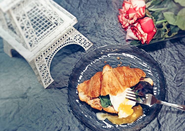 Круассан с тунцом и яйцом пашот🥐🐟🥬 step by step