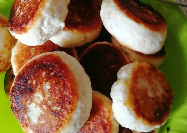 - Мокрыми руками сформировать шарик из творожной массы (примерно 1 ст. ложка), хорошо обвалять его в муке, слегка приплюснуть и жарить на сковороде с толстым дном, на медленном огне, под крышкой, с небольшим количеством масла..