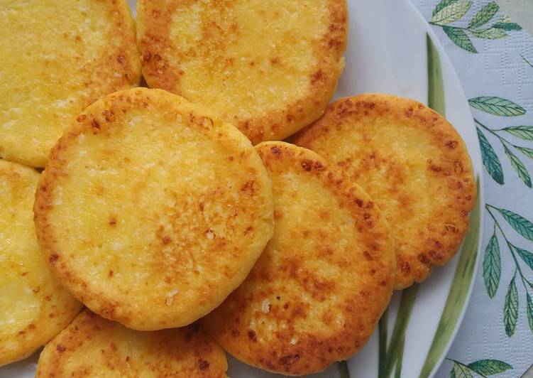 - Формируем из теста шарики, слегка их сдавливаем с двух сторон и выкладываем на разогретую сковороду с растительным маслом..