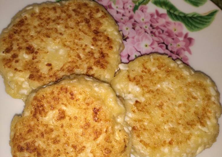 - Растереть творог, добавить яйца, манку, соль размешать..