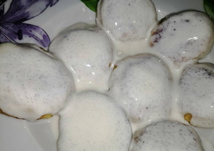 - Выложить сырники на тарелку. Сметану смешать с сахаром и залить сверху сырники. Готово! Приятного аппетита 👍.