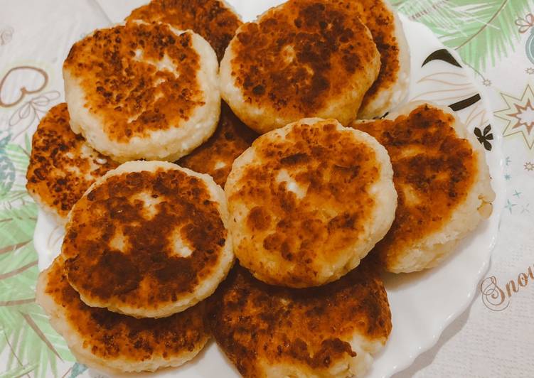 - Добавить соду и просеивать муку. Лепить шарики диаметром около 3 см. Затем приплюснуть шарики до плоских кружочков. Разогреть на сковороде масло, жарить сырники с двух сторон до золотистой хрустящей корочки..